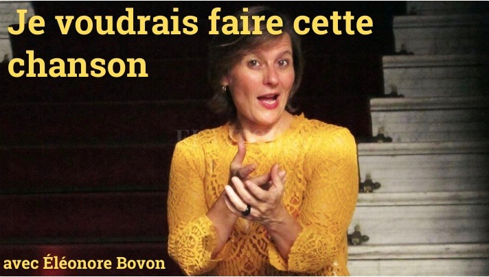 Pour donner corps, voix, paroles et musique à cette envie-là, Eléonore Bovon, chanteuse, compositrice, autrice, accompagne votre désir de création jusqu’à la réalisation de la, ou des chansons que vous portez en vous. Avec vous, elle traversera ce moment de découverte exceptionnelle lorsqu’enfin on trouve les mots, on écoute sa musique intérieure, on a la parole, et on se chante !